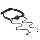 でも、今回お話しするのは、猿轡。しかも、ニップルクランプと呼ばれる乳首を挟むクリップがチェーンで2つつながれたモノ。これ、口枷部分はボールギャグだったり、バイトギャグだったりするよね。〝Y〟が持っているのはシリコンのバイトギャグになっているタイプ(以前、こちらにも記事を書いたよ)。こちら、普通に奴隷に装着したら、一つ、問題が……。